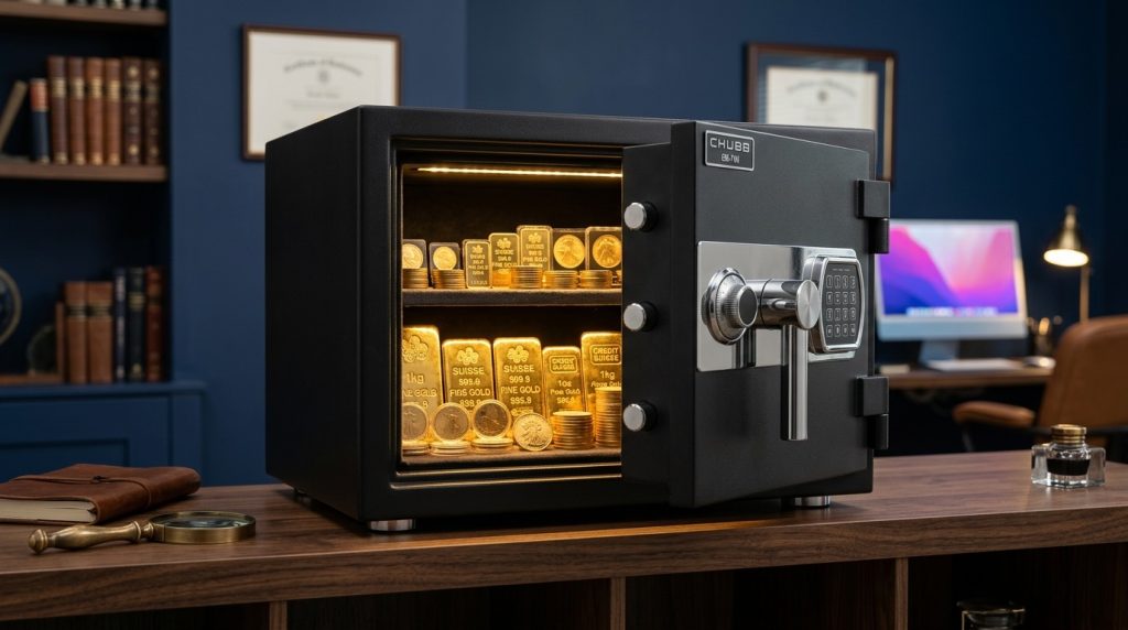 A home safe gives you full control and instant access, with no annual fees. If you want to physically hold your gold in a crisis, this is the only option that lets you do that. But home safes come with real risks: theft, fire, and insurance coverage gaps.